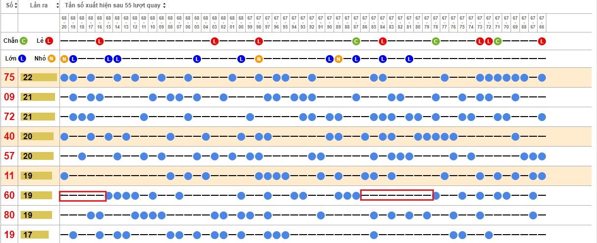 Ví dụ sau 55 lần quay con 60 cũng thuộc dạng về nhiều và 5 lần vừa rồi chưa về,tiểu sử qua các lần quay thì cao lắm là 8 lần nó đã về