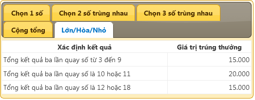 Người tham gia dự thưởng lựa chọn các cách chơi sau: Lớn, Hòa, Nhỏ